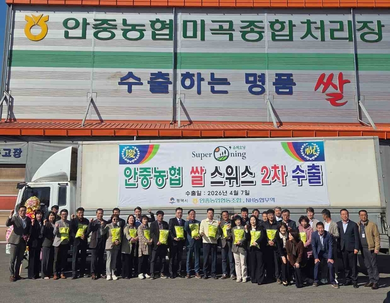 경기뉴스광장 정일수 기자 |평택시가 7일 안중농협 임직원과 농협중앙회, NH농협무역 관계자들이 참석한 가운데 안중농협 미곡처리장(RPC)에서 지역 대표 브랜드 ‘슈퍼오닝 쌀’ 스위스 수출 기념식을 가졌다.