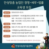 안성시, ‘안성맞춤 농업인 경영·세무·법률 교육’ 교육생 모집
