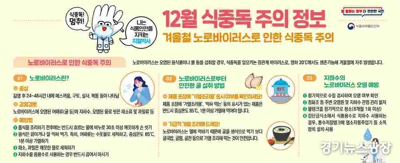 경기뉴스광장 최옥분 기자 |안성시보건소는 겨울철 노로바이러스 식중독 예방을 위해 개인위생 및 식품 관리에 주의를 기울여야 한다고 당부했다.