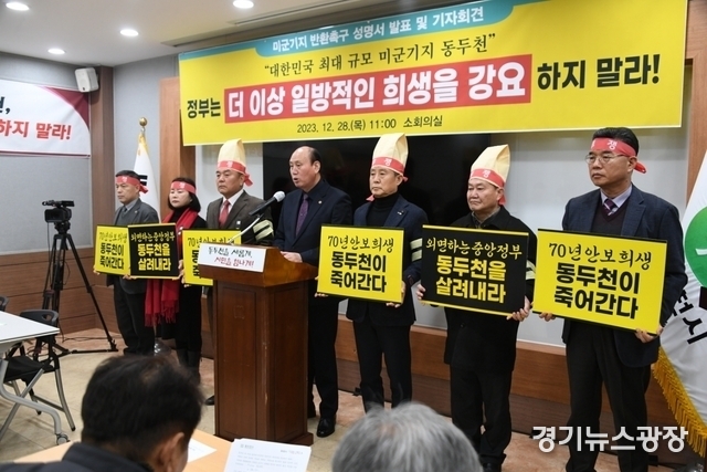 경기뉴스광장 최옥분 기자 |동두천시가 정부를 향해 미반환 공여지를 모두, 즉각 반환하라고 촉구하고 나섰다. 시는 28일 시청에서 긴급 기자회견을 열고 동두천 미군 공여지의 즉시 반환을 정부에 요구했다.