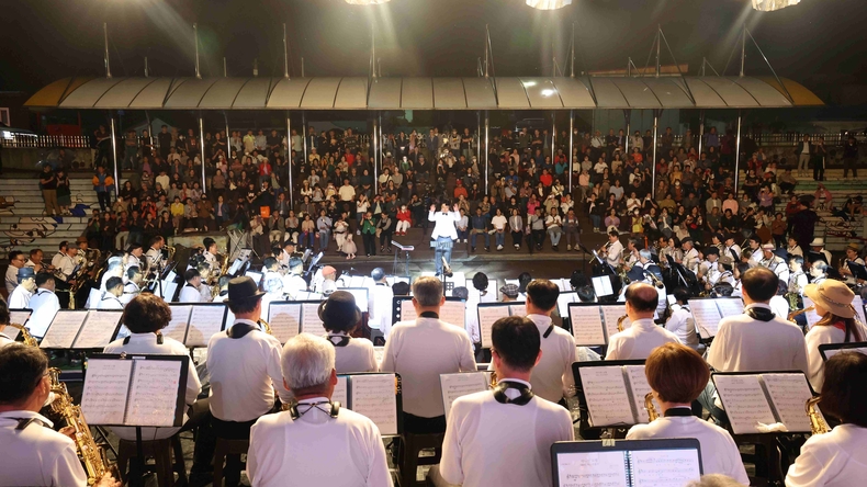 이날은 뉴비전앙상블, 거북이앙상블, 하모니앙상블 등 개별 동아리들이 색소폰 독주와 3중주, 4중주 등 다양한 구성을 통해 각자의 색깔을 살린 무대를 선보였다. 마지막 피날레는 ‘평행선’, ‘머나먼 고향’, ‘만남’ 등 친숙한 곡들이 100인 색소폰 하모니로 울려 퍼지며 시민들의 큰 호응을 받았다.
