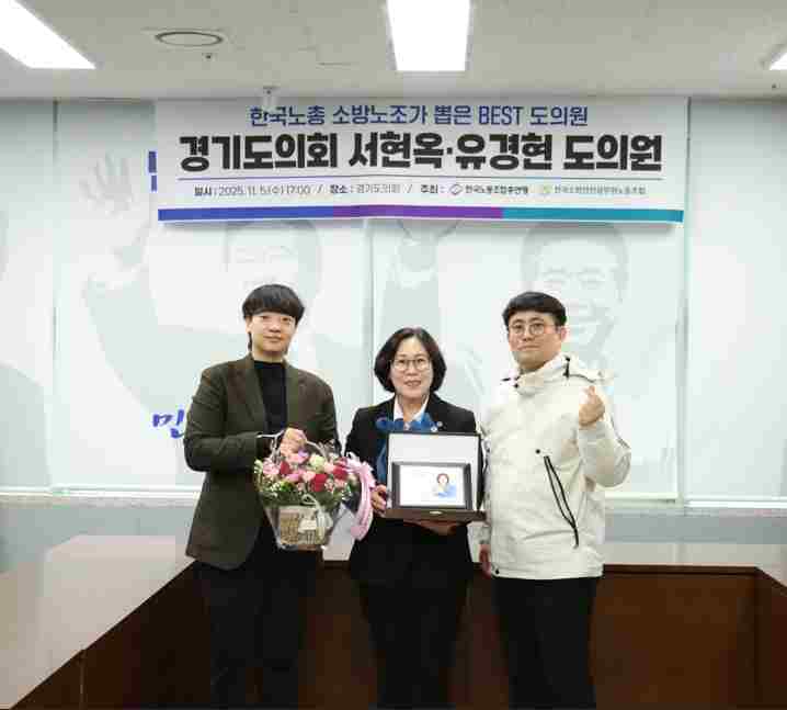 경기뉴스광장 정일수 기자 |서현옥 경기도의회 의원(더불어민주당, 평택3)은 5일 한국노동조합총연맹 전국소방안전공무원노동조합으로부터 한국노총 소방노조가 뽑은‘Best 도의원’ 감사패를 수상했다.