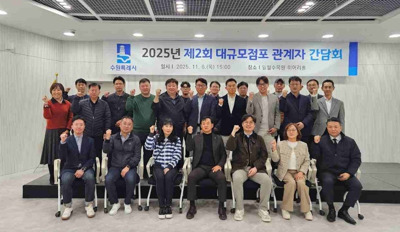경기뉴스광장 정일수 기자 |수원특례시가 6일 일월수목원 히어리홀에서 관내 대규모점포 19개소 관계자와 간담회를 열고, 지역 상생협력 방안을 논의했다.