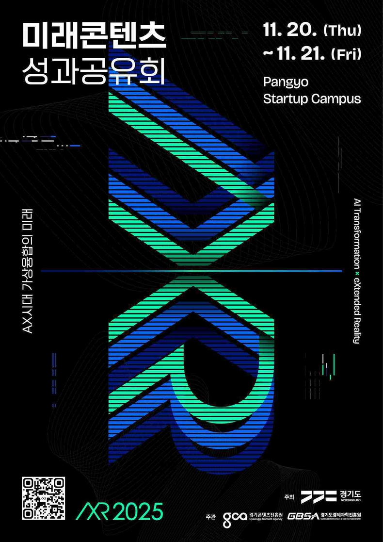 경기뉴스광장 정일수 기자 |경기도(경기콘텐츠진흥원, 경기도경제과학진흥원)는 가상융합산업의 지원성과 확산을 위해 ‘2025년 경기도 가상융합산업 성과공유회(이하 AXR)’를 오는 20~21일 양일간 판교 스타트업 캠퍼스에서 개최한다.