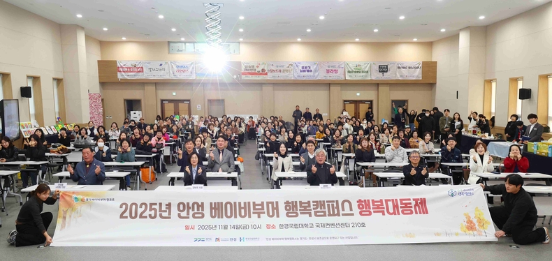 경기뉴스광장 정일수 기자 |안성시는 14일 오전 10시 안성 베이비부머 행복캠퍼스(한경국립대학교 평생교육원) 한경국립대학교 미래융합기술연구센터 2층 국제컨벤션센터에서 교육생과 지역 주민들의 활발한 참여 속에 ‘2025 행복대동제’를 성황리에 개최했다.