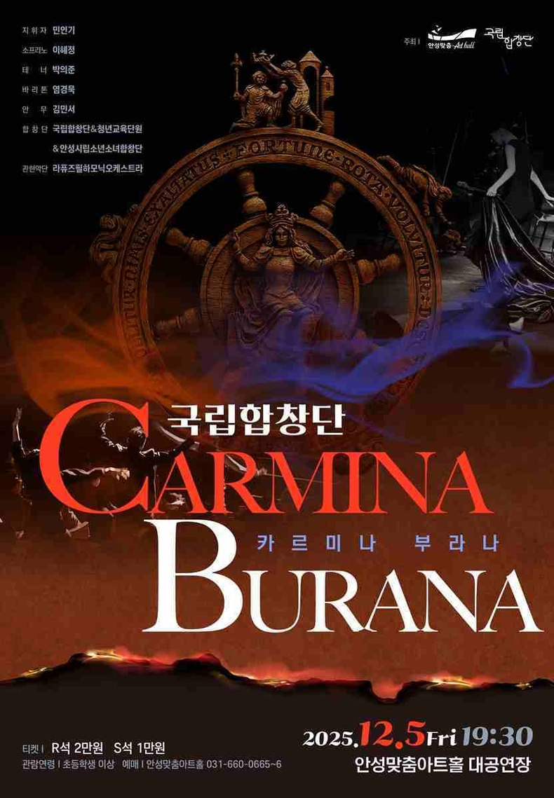 인생의 굴곡진 운명을 되돌아보게 하는 깊은 감동을 전할 국립합창단의 ‘르미나 부라나’ 티켓 가격은 R석 3만원, S석 2만원이며, 안성 시민은 15% 할인 혜택을 받을 수 있다.