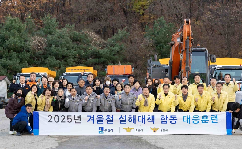 경기뉴스광장 정일수 기자 |수원특례시가 겨울철 강설에 대비해 4개 구청, 유관기관, 민간단체와 함께 설해 대책 합동 현장대응 훈련을 하고, 제설 대응·협력 체계를 점검했다고 19일 밝혔다.