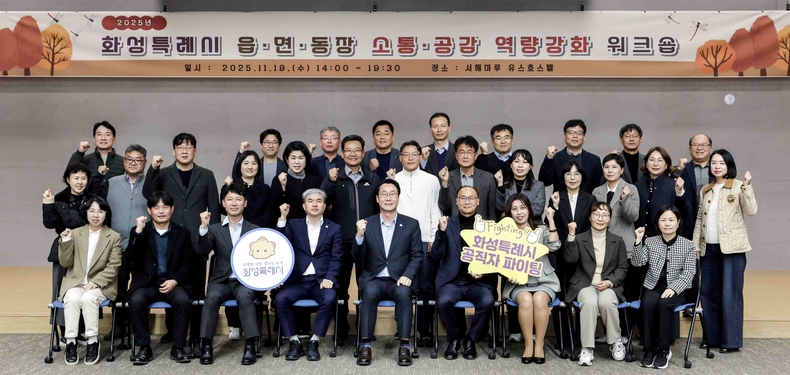 경기뉴스광장 정일수 기자 |화성특례시가 지난 19일 서해마루 유스호스텔에서 ‘2025년 읍면동장 소통·공감 역량 강화 워크숍’을 개최했다.