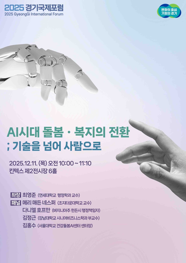 경기뉴스광장 정일수 기자 |경기도가 오는 10~11일 고양 킨텍스에서 열릴 예정인 ‘2025 경기국제포럼’세션가운데 하나로 돌봄세션을 개최한다.