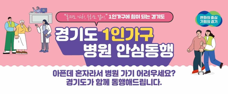 10일 경기도에 따르면 1인가구 병원안심동행은 병원 예약부터 접수·수납, 진료 동행, 귀가까지 1인가구라면 누구나 필요할 때 이용할 수 있는 생활밀착형 지원 서비스다. 2023년 제정된 ‘경기도 1인가구의 기본 조례’에 따라 추진되고 있다.