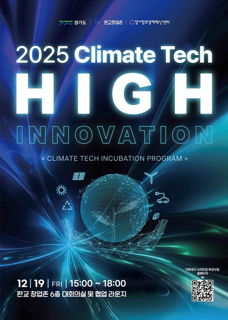 경기뉴스광장 정일수 기자 |2026년 본격 시행되는 기후규제를 앞두고 경기도와 경기창조경제혁신센터가 기후테크 기업과 함께 오는 19일 판교제2테크노밸리기업지원허브에서 간담회·세미나·성과공유회(High innovation)를 함께 개최한다
