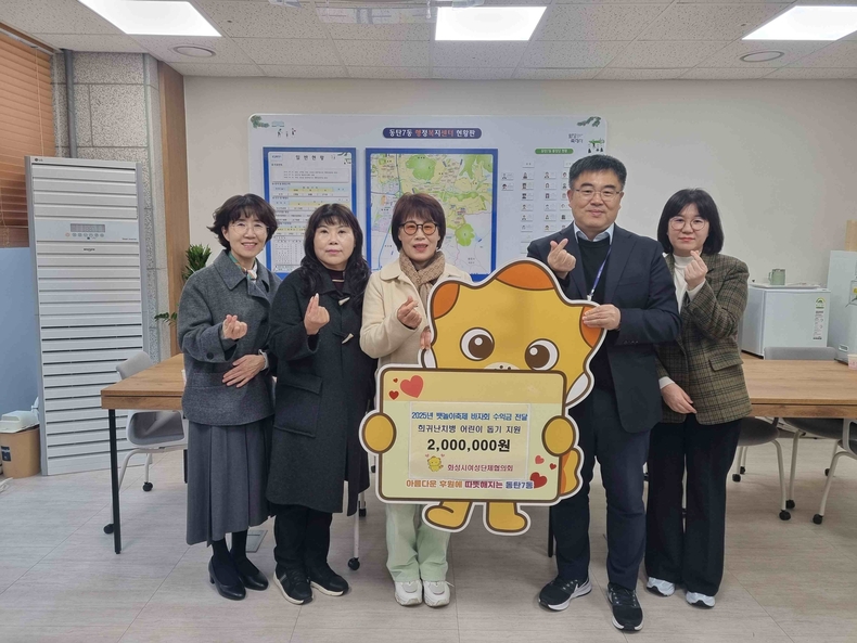 이번 후원금은 화성시여성단체협의회 회원들의 자발적인 참여로 운영된 2025년 화성 뱃놀이 축제 바자회 수익금으로 마련됐으며, 회원들의 뜻에 따라 경제적으로 어려움을 겪고 있는 희귀난치질환 아동의 치료비로 사용될 예정이다.