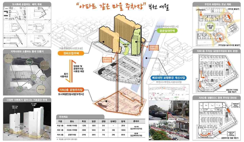 부천시 여월동은 전국 최초로 가로주택정비사업과 연계해 아파트 같은 마을주차장을 조성했다. 3400㎡ 규모 부지에 85면의 공영주차장을 중심으로 동네 골목 환경이 정비되고 주거환경 전반이 개선되면서 주민 만족도가 높아졌다. 특히, 자가용 중심의 노후 주거지에 실질적인 해결책을 제시한 모범 사례로 평가받고 있다.