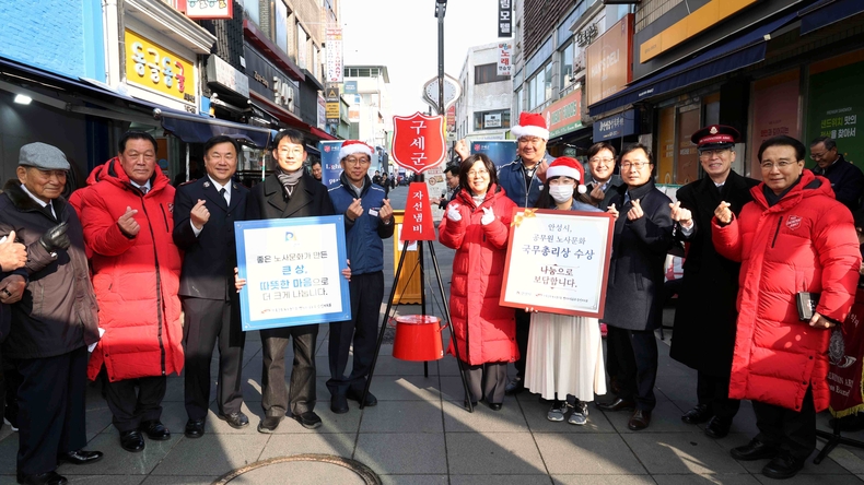안성시는 행정안전부에서 열린 공무원 노사문화 우수행정기관 인증제 심사 결과 우수행정기관으로 선정되며 시상금 가운데 250만원을 노사 공동 성금으로 마련해 안성 명동거리에서 열린 ‘2025년 구세군 자선냄비 시종 행사’에서 기부했다.