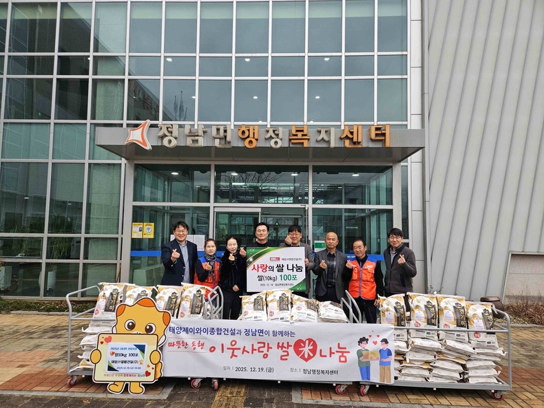 이날 정남면 행정복지센터에서 열린 전달식에는 김지우 태양JY종합건설(주) 대표를 비롯한 임직원, 조성하 정남면장, 최학운 이장단협의회장, 최원봉 정남면자원봉사지원단장 등이 참석해 나눔의 의미를 함께했다.
