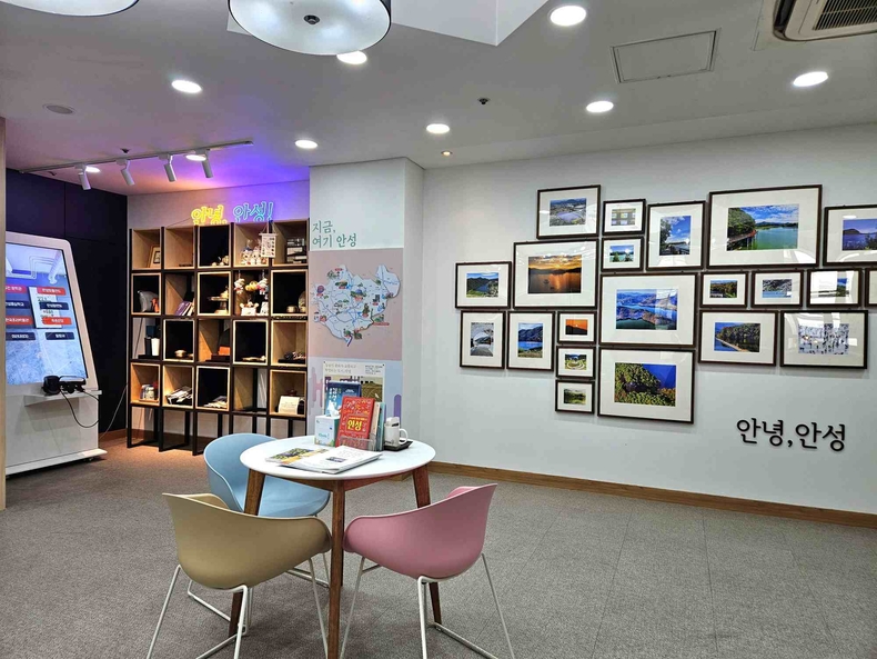 안성시 관광지원센터는 안성종합버스터미널 내에 위치해 뛰어난 접근성을 갖추고 있으며, 단순한 관광 정보 제공을 넘어 안성의 문화와 정체성을 체험할 수 있는 관광 복합문화공간으로 운영되고 있다. 센터 내에서는 ‘안녕, 안성’ 시리즈 사진 전시를 비롯해 지역 예술가들의 공예품, 안성맞춤의 본질이라 할 수 있는 안성유기 전시 등을 관람할 수 있으며, 주요 관광지를 간접 체험할 수 있는 VR 콘텐츠를 운영해 방문객들의 흥미와 참여도를 높이고 있다.