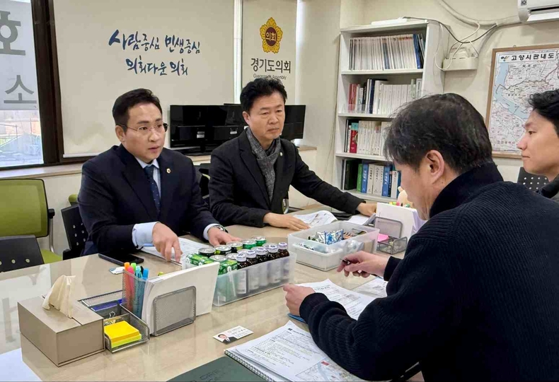 경기뉴스광장 강성규 기자 |변재석 경기도의회 교육행정위원회 의원(더불어민주당, 고양1)은 13일 경기도의회 고양상담소에서 고양시의회 이종덕 시의원과 함께 고양은평선 도래울역(가칭) 설계의 출입구 증설을 위해 경기도 철도항만물류국 관계 공무원들과 논의 자리를 가졌다.