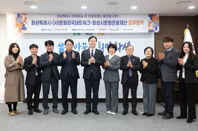 협약에 따라 화성특례시와 화성시문화관광재단은 사단법인 문화강국네트워크와 문화예술 및 관광 분야 발전을 위한 공동사업 발굴, 정책 자문, 콘텐츠 개발 등 다양한 분야에서 협력을 이어갈 예정이다.
