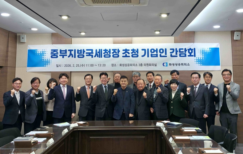 경기뉴스광장 정일수 기자 |화성상공회의소가 25일 상공회의소 3층 의원회의실에서 이승수 중부지방국세청장을 초청해 지역 기업인들과의 간담회를 개최했다고 26일 밝혔다.