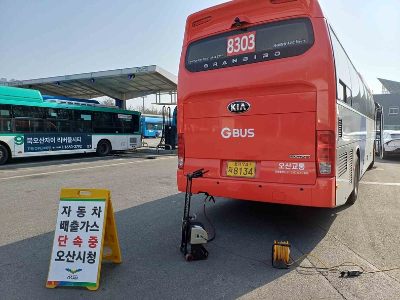 특히, 이번 점검은 봄철 초미세먼지 농도 저감을 위한 ‘초미세먼지 총력대응’의 일환으로 추진된 것으로, 관내 버스 차고지 가운데 오산교통을 대상으로 운행차 배출가스 허용기준 초과 여부를 집중적으로 점검했다.