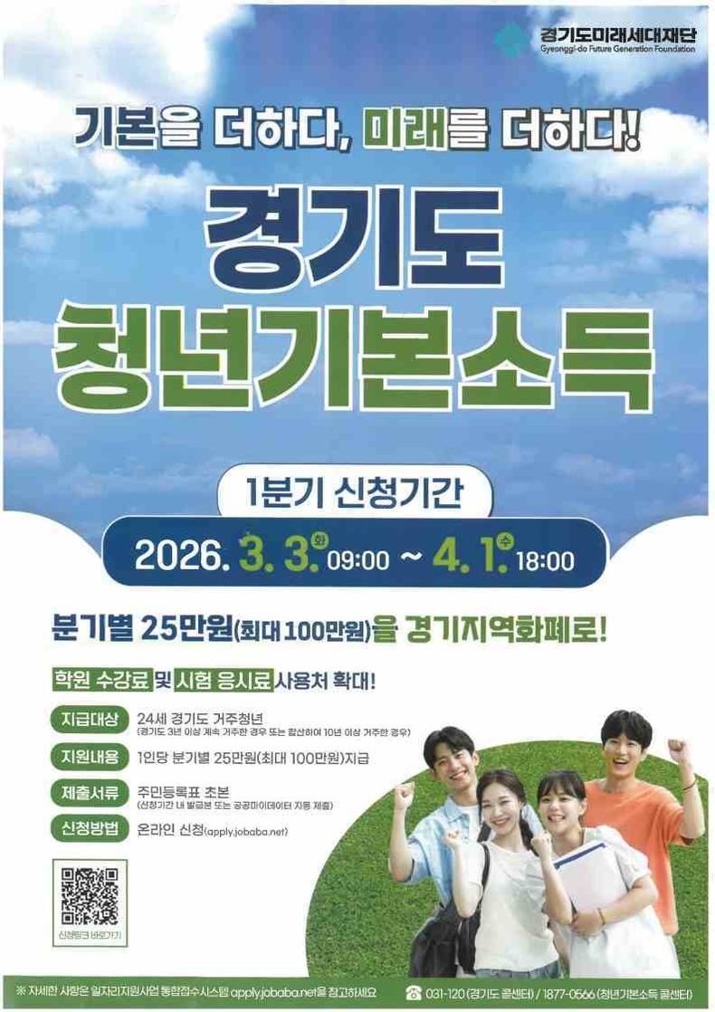 경기뉴스광장 정일수 기자 |오산시가 24세 청년에게 분기별 25만원을 지급하는 ‘청년기본소득’ 2026년 1분기 신청은 오는 4월1일까지 접수한다고 6일 밝혔다.