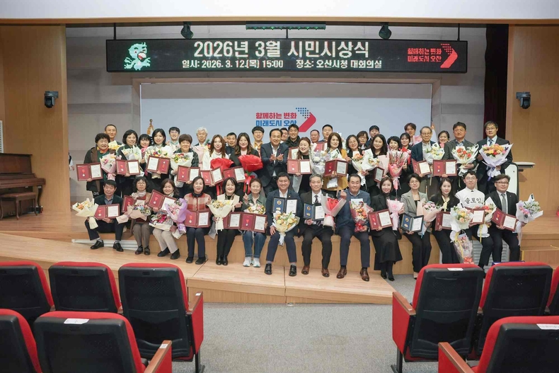 이날 시상식은 이권재 오산시장의 축하 인사에 이어 표창장 전수 및 수여, 단체사진 촬영 순으로 진행됐으며, 총 50명의 수상자가 참석해 의미를 더했다.