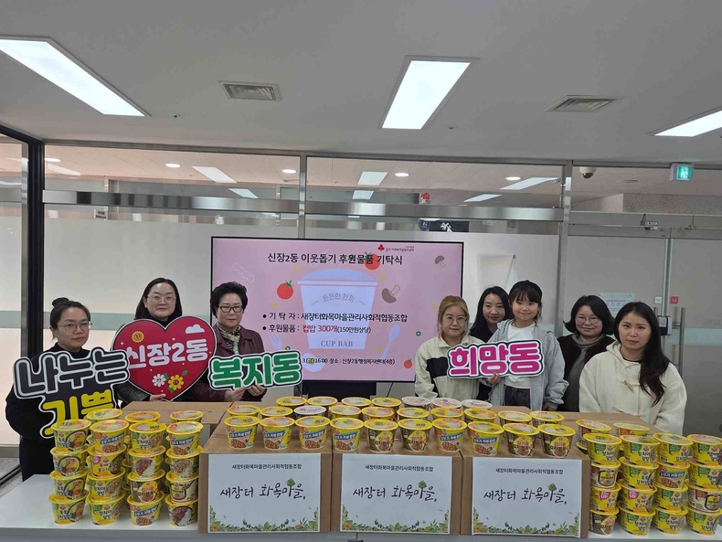 이번 기부는 새장터화목마을협동조합 조합원과 ‘새장터 화목한 어울터’ 프로그램의 강사진, 수강생들이 지역사회 어려운 이웃을 돕기 위해 뜻을 모아 마련했다. 특히, 프로그램에 참여하는 아동들이 자율적으로 컵밥 기부 활동에 참여해 나눔의 의미를 더했다.