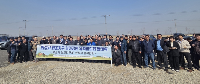 화성시 농업인단체와 승마협회는 17일 ‘화성시 화옹지구 경마공원 유치협의회 발대식’을 갖고 지역 농업과 말산업의 상생 발전을 위한 협력을 선언했다.
