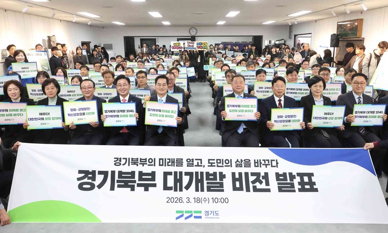 김동연 지사는 18일 성평등 파주 전시·교육관에서 경기북부 대개발 비전 선포식을 열고 “국민주권정부 출범 이후 경기북부는 새로운 도약의 전기를 맞았다”며 “경기도 역시 경기북부에 대한 특별한 구상을 그동안 준비해왔다. 경기북부 대개발 2040 비전을 통해 경기북부의 잠재력을 깨우고 대한민국의 새로운 성장축을 만들겠다”고 말했다.