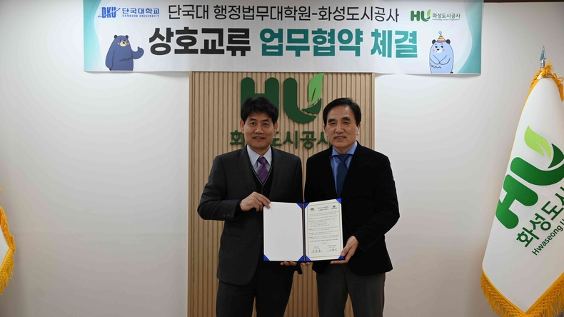 이번 업무협약식에는 한병홍 화성도시공사 사장과 이종구 단국대학교 행정법무대학원 원장이 지난 13일 상호 유기적인 협력체계를 구축해 인재 양성을 도모하기로 합의했다.