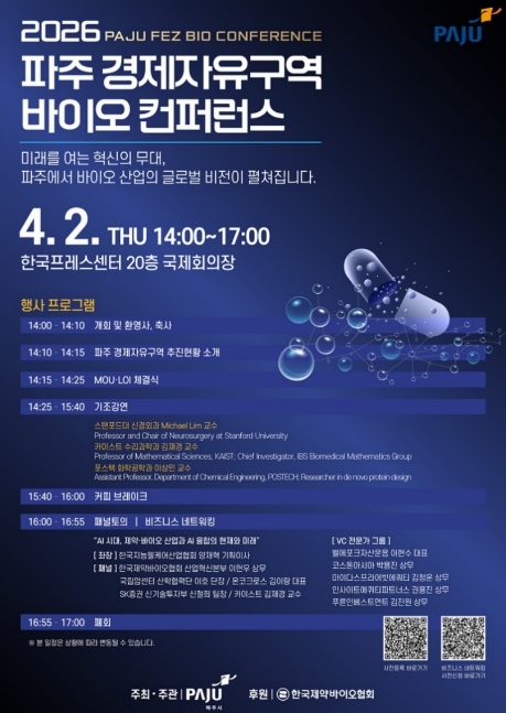 파주시가 주최하고 한국제약바이오협회가 후원하는 이번 행사는 파주경제자유구역 지정을 추진하고 있는 파주시가 핵심 전략 산업으로 구상 중인 바이오산업 분야의 국제 협력 기반을 확대하고 투자 유치 가능성을 모색하기 위해 기획됐다.