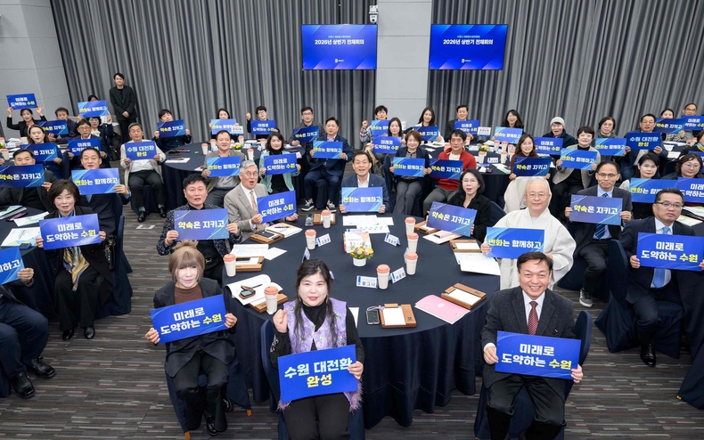 수원시 새로운수원위원회는 26일 시청 중회의실에서 2026년 상반기 전체회의를 열고, 공약 사업 평가 결과를 발표했다.