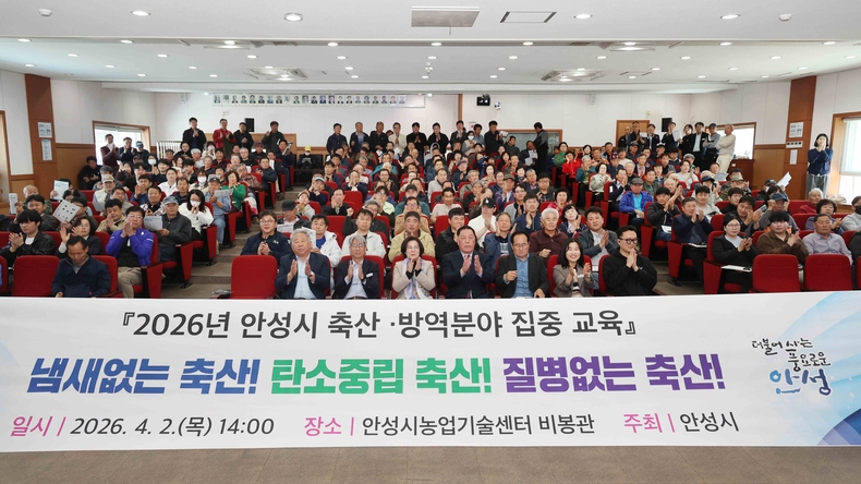 경기뉴스광장 정일수 기자 |안성시가 지난 2일 농업기술센터 비봉관에서 관내 한·육우 및 젖소 농가 관계자 250여 명이 참석한 가운데 ‘2026년 축산·방역 분야 집중 교육’을 개최했다고 3일 밝혔다.