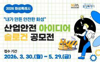 ‘2026년 화성특례시 산업안전 아이디어·슬로건 공모전’은 화성시 제조업 현장에 적용 가능한 창의적인 정책 아이디어를 발굴하고, 지역을 대표할 산업안전 슬로건을 선정해 안전문화 확산에 활용하기 위해 마련됐다.