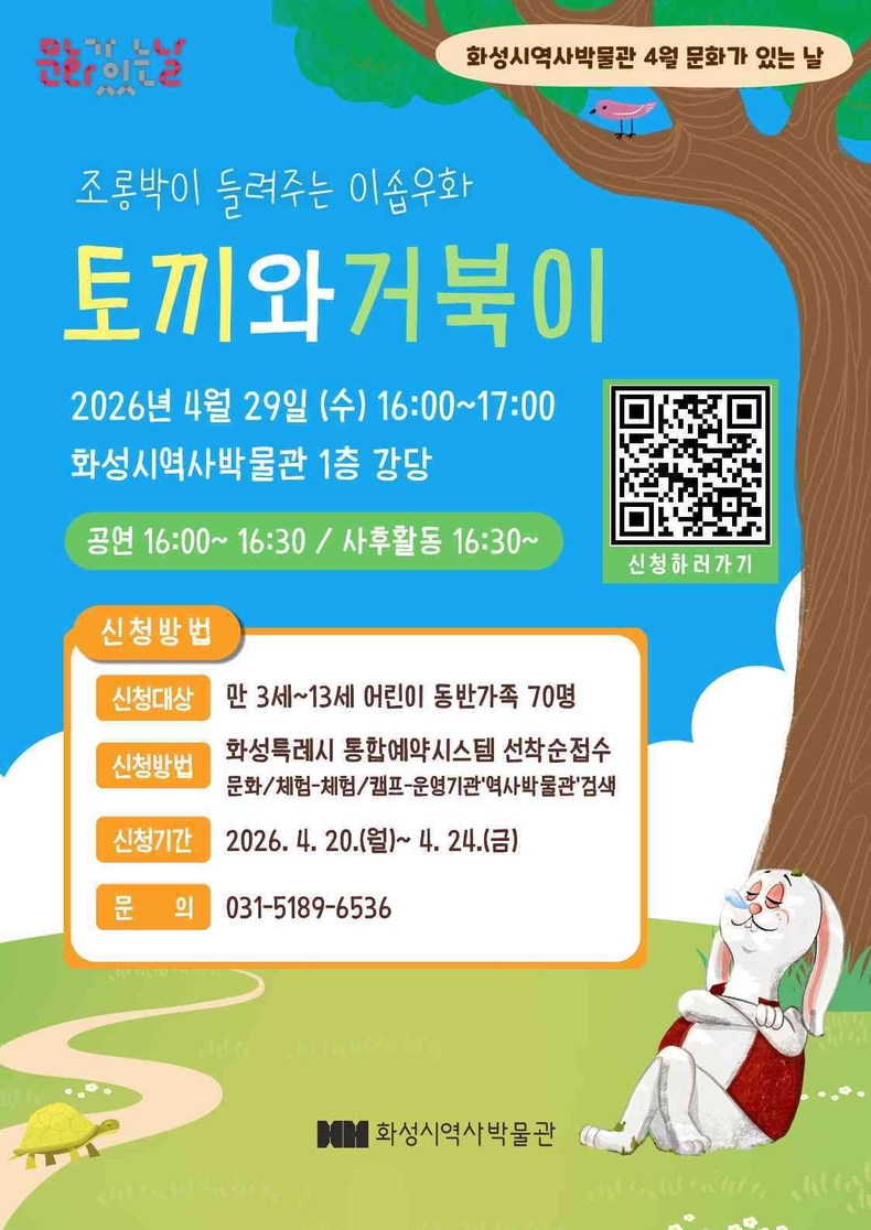 참여 신청은 4월20일부터 24일까지 화성특례시 통합예약시스템을 통해 선착순으로 접수하며, 자세한 사항은 역사박물관 홈페이지 및 SNS에서 확인할 수 있다.