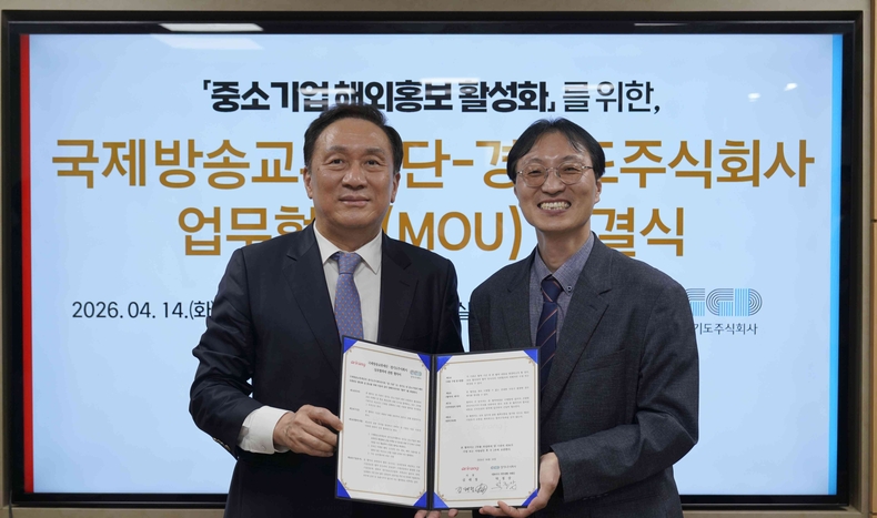 경기뉴스광장 강성규 기자 |경기도주식회사가 14일 서울시 아리랑타워에서 국제방송교류재단 아리랑TV와 ‘2026년도 경기도 내 중소기업 해외홍보·마케팅을 위한 업무협약’을 체결했다.