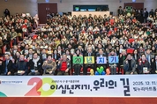 경기뉴스광장 정일수 기자 |수원시 시·구·동 지역사회보장협의체가 한자리에 모여 화합하는 ‘제3회 시·구·동 이음공유회’가 11일 빛누리아트홀 공연장에서 열렸다. 이날 행사에는 이재준 수원시장을 비롯해 시·구·동 지역사회보장협의체 위원, 사회보장 기관 관계자, 시민 등이 함께했다. 이날 행사는 수원시가 주최하고, 수원시지역사회보장협의체가 주관했다. 수원시 지역사회보장협의체가 20년 동안 걸어온 발자취를 담은 영상 ‘이십년지기 우리의 길’을 상영한 후 비전2030 선포식을 열었다. 선포식에서 생동감크루가 향후 지역 복지의 방향을 시각적으로 표현한 ‘라이트볼 미디어 퍼포먼스’를 펼쳤다. 수원시는 협의체 발전에 기여한 유공자 60명(수원특례시장상 32명, 수원특례시의회 의장상 8명, 민간위원장상 20명)을 표창을 수여했다. 이재준 시장은 “2025년 한 해 동안 우리 지역의 복지 향상을 위해 묵묵히 헌신해 주신 여러분께 감사드리며, 내년에도 여러분의 따뜻한 마음과 열정으로 우리 지역 곳곳에 희망을 전해 주시길 바란다”고 말했혔다.